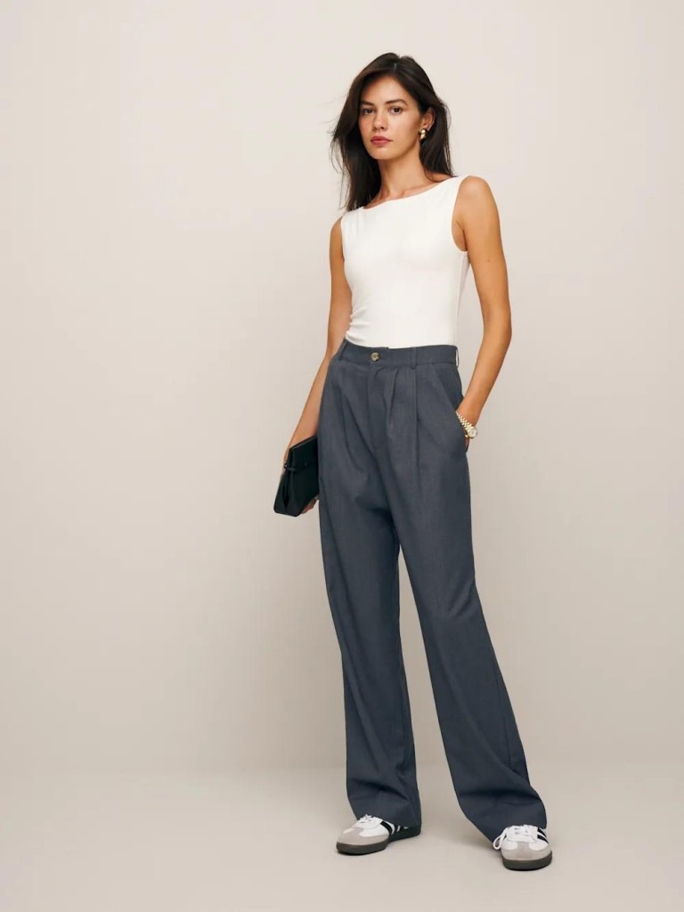 Crafted from buttery-soft recycled knit fabric, this effortless top combines laid-back comfort with Reformation’s signature sustainable style. The relaxed fit drapes beautifully, while the scoop neckline and slightly cropped length create a modern, flattering silhouette.