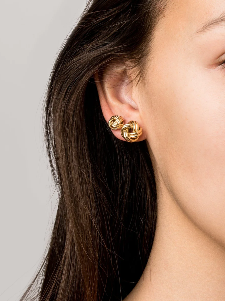 Crafted in solid 14K gold, these elegant knot studs transform a universal symbol of connection into understated everyday luxury. The three-dimensional twisted design creates captivating light play, while the comfortable screw-back closure ensures secure wear.